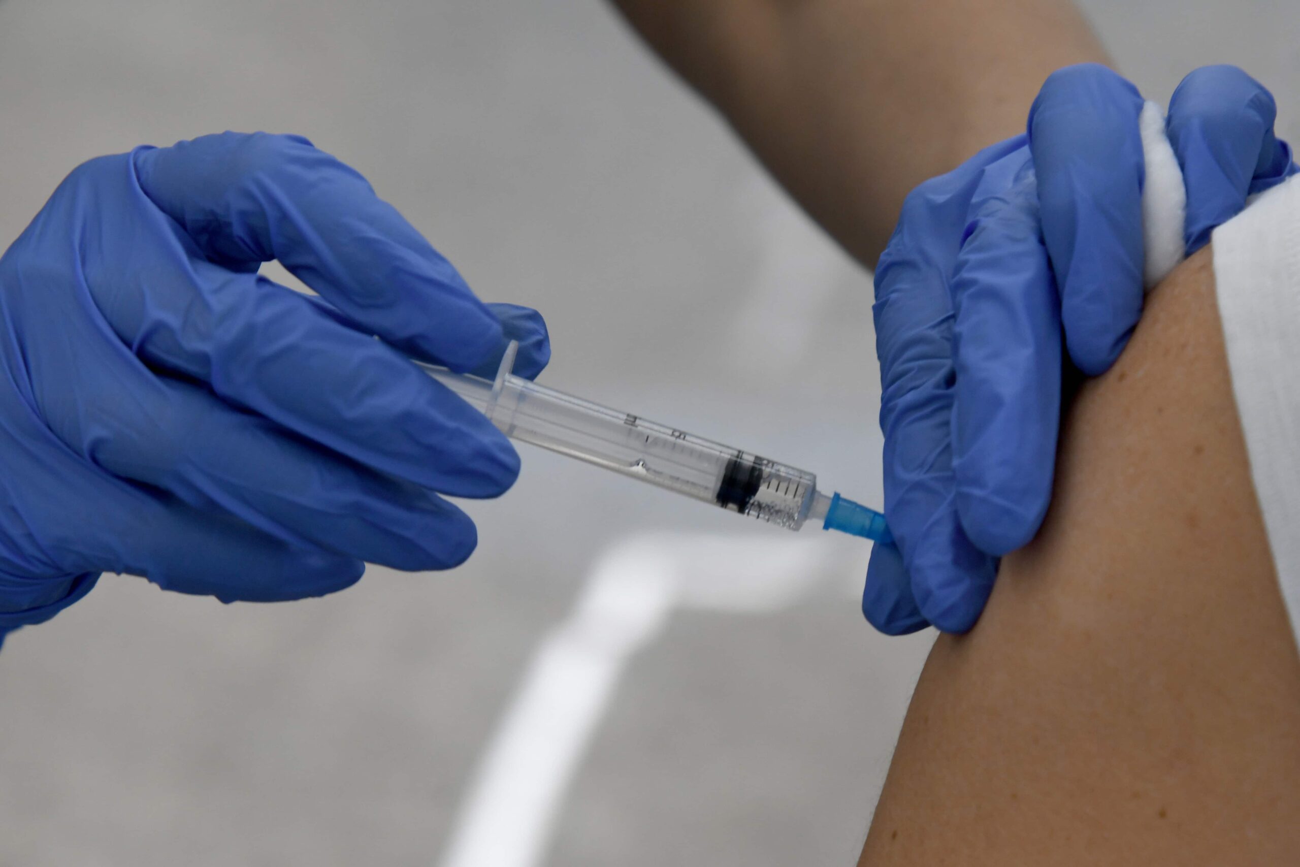 A health worker vaccinates citizens at one of the covid - 19 vaccination points in Podgorica on April 14, 2021.