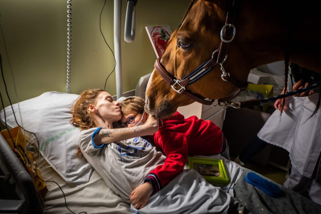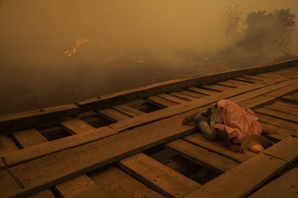 The stories deal with photographs that were taken in 2020, so the pandemic is featured quite heavily. What I think the jury did very interestingly this year is that they looked for pictures that weren’t necessarily obvious storylines. There are not just pictures that deal with photos from the hospitals or people that are suffering. These pandemic stories are really looking at the kind of underlying consequences for all of us. So you’ve got a picture that deals with people who couldn’t work out anymore in their house. So how did they stay fit? You’ve got the overall winner, which is a photo of an elderly lady being hugged for the first time through a hugging curtain. So all these little bits of different narratives, which I think they did wonderfully. So that’s, that’s the main theme. The other two themes, which, unfortunately, will stay dominant, are the climate crisis – bushfires, water shortages – and social justice movements. So there’s two stories in there that deal with Black Lives Matter protests in the US, but also protests in Peru, etcetera. So those are three dominant themes this year.