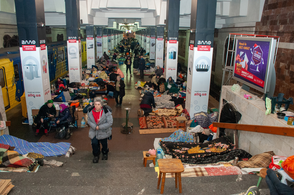 Люди прячутся от обстрелов в метро в Харькове в четверг 24.03.2022.Фото Мариенко Андрея