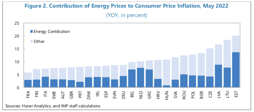 “Governments cannot prevent the loss in real national income arising from the terms-of-trade shock. They should allow the full increase in fuels costs to pass to end-users to encourage energy saving and switching out of fossil fuels,” IMF Europe explained.