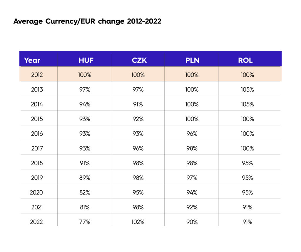 Average currency rate changes for CEE countries 2012-2022 / Source: OECD/ Central European Times