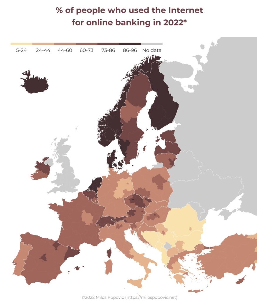 Percentage of people who used the internet for online banking in 2022/ Source Milos Popovic/Twitter