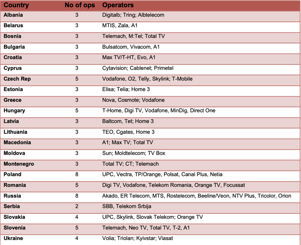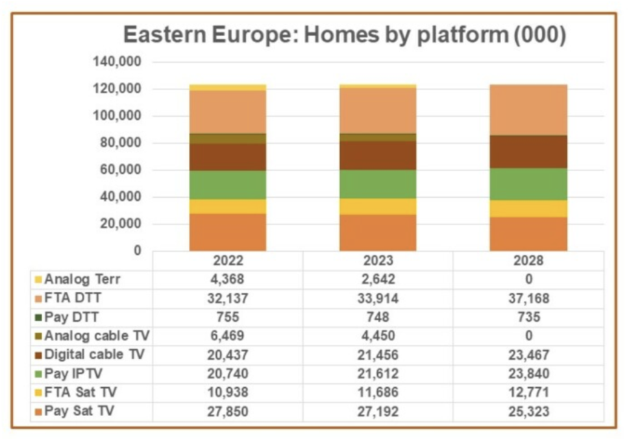 The number of pay TV subscribers in Eastern Europe will decline by 8mn from its peak of 81mn in 2018, to 73 million by 2028, according to a new report by Digital TV Research.