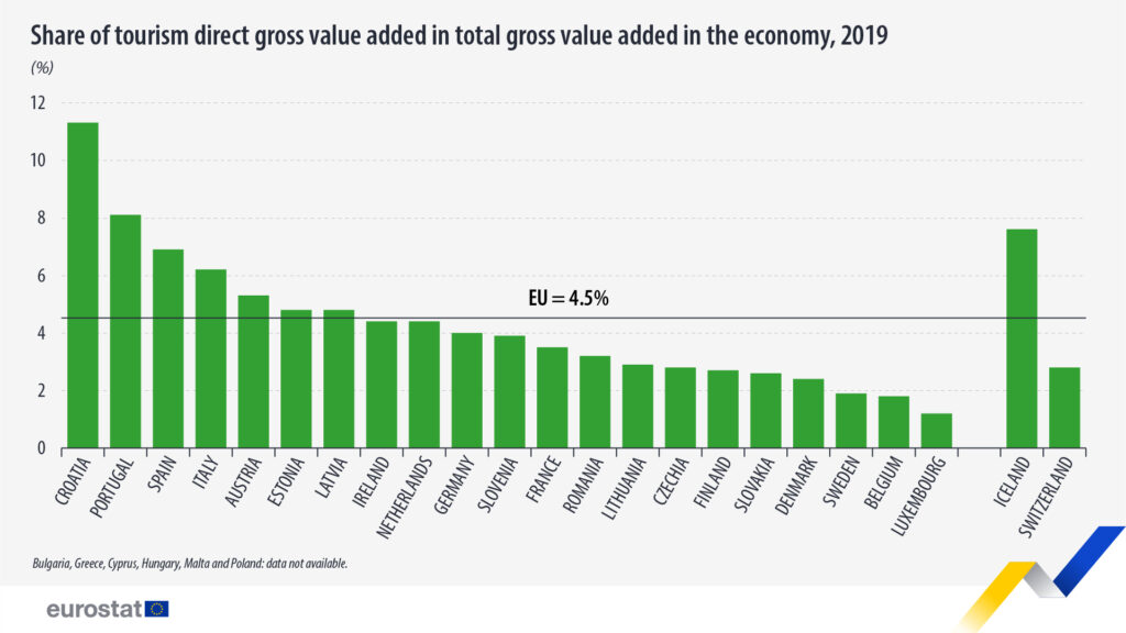 Share of tourism direct gross value added in total GVA in the economy, 2019/ Source: Eurostat