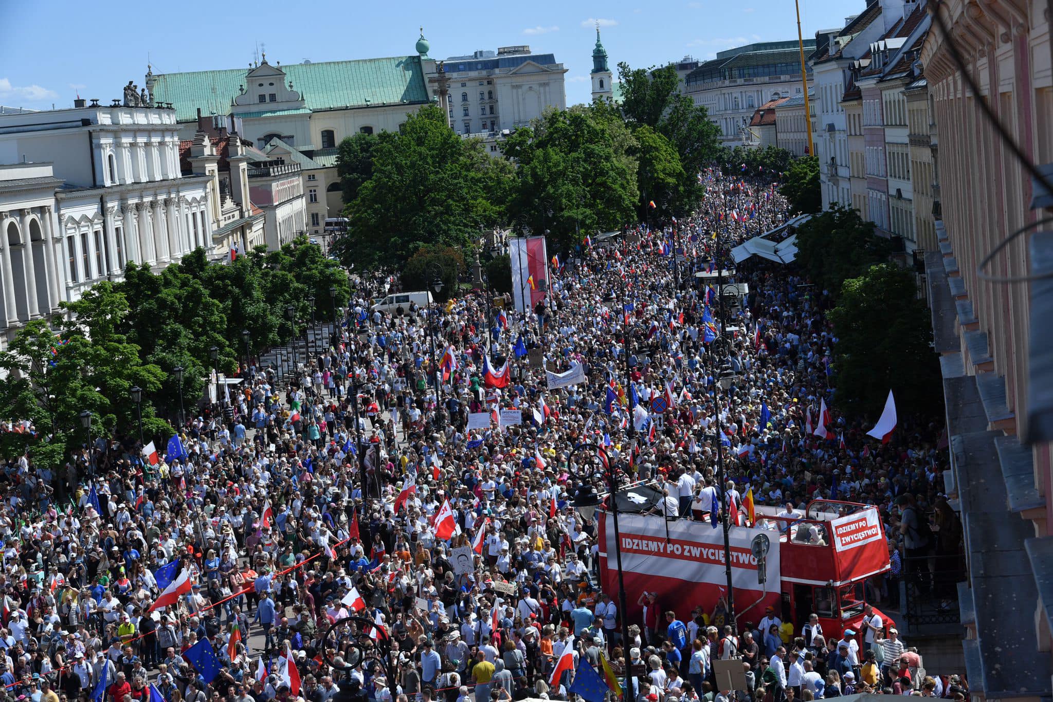 A massive mobilisation of Polish opposition voters and leaders estimated at up to half a million people took to the streets of Warsaw to protest the country’s nationalist government on Sunday, 4 June, Gazeta Wyborcza reported.