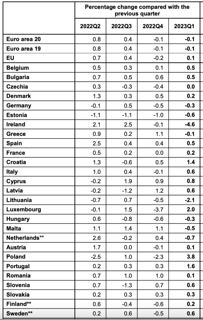 Initially, Eurostat had projected a growth of 0.1% in the final quarter of 2022 and 0.2% in the first quarter of 2023. However, they have now revised these numbers to indicate contractions of 0.1% in both periods.