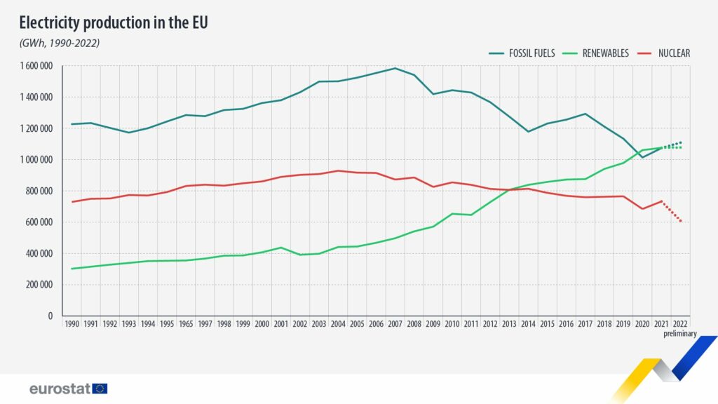 Nuclear, natural gas volumes fell in EU in 2022
