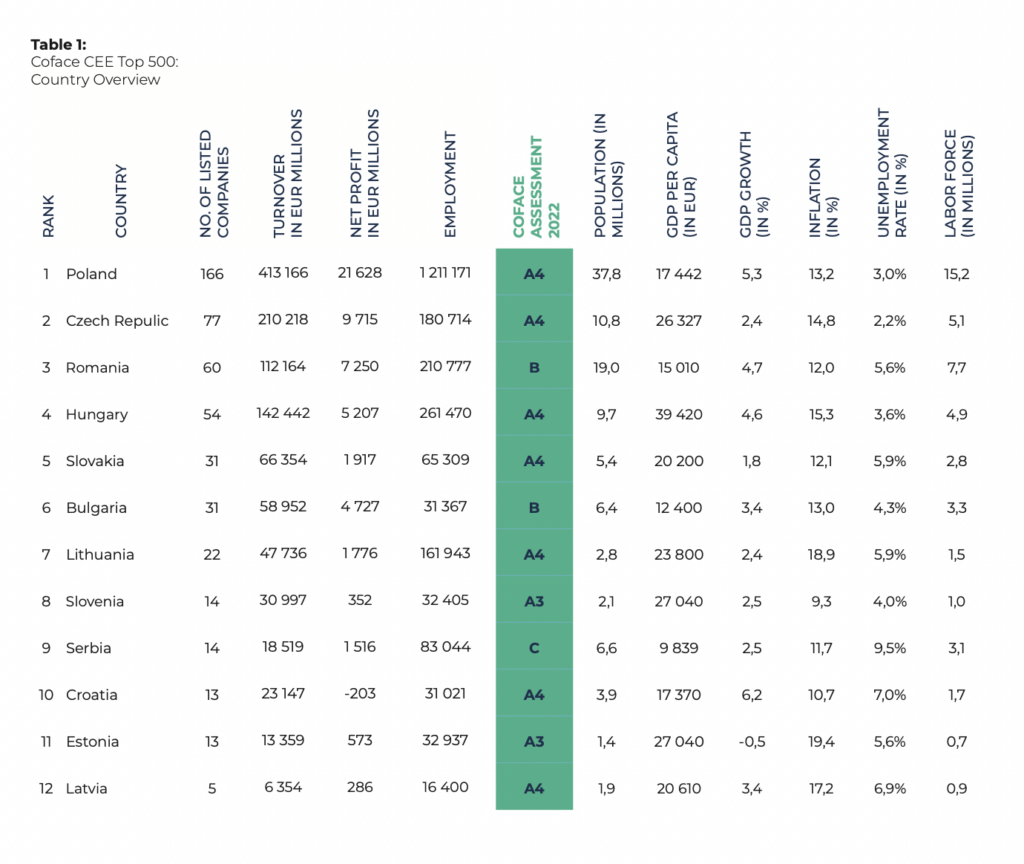 In its 15th annual study, the French insurance company collects data on CEE’s largest businesses’ turnover, payrolls and frameworks. The report serves “as a representative indicator of the market trends throughout the entire region”, according to Coface.