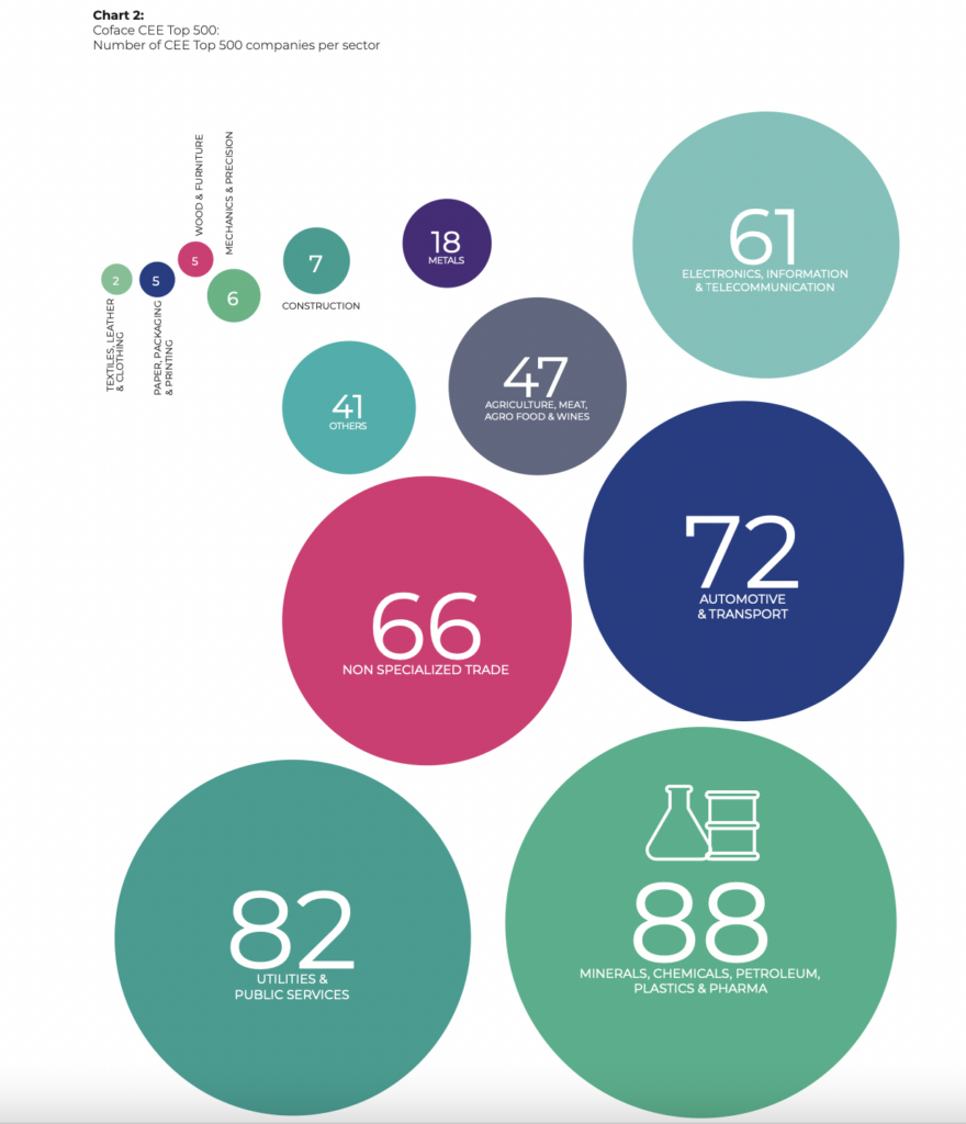 Reading Time: 7 minutesAutomotive and Transport has dropped to third place amongst large companies in CEE, as business sectors of Central and Eastern European (CEE) shifted in size, partly due to soaring commodities prices, the latest Coface CEE Top 500 study found.