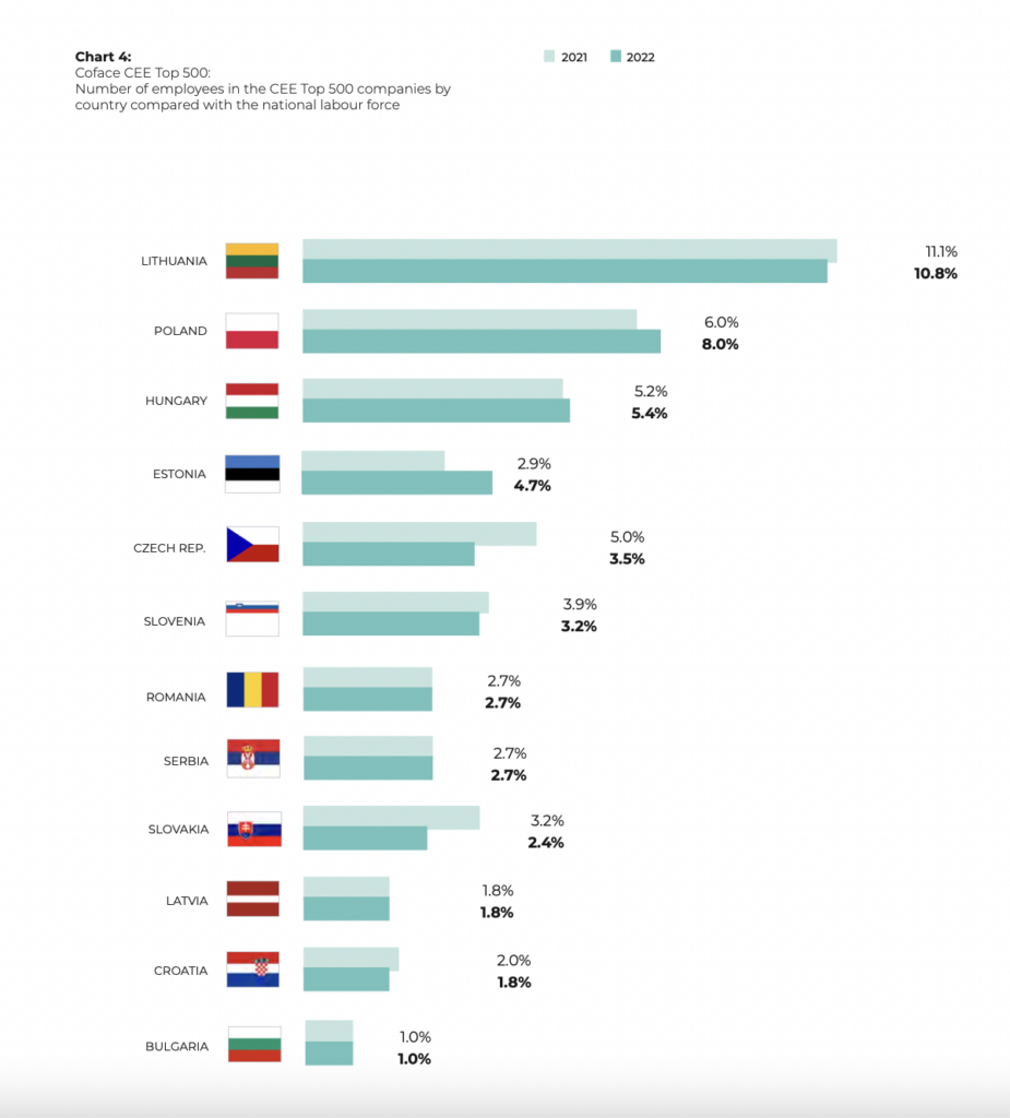 Companies have been very important employers in CEE, Coface writes, and those in the Top 500 increased payroll numbers by 3.5% in 2022.