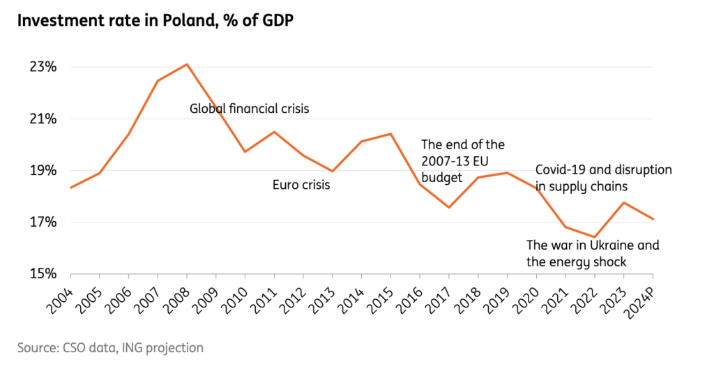 The report outlines several opportunities for reviving investment in Poland. The unblocking of access to EU funds and stabilizing regulations and taxes should provide a much-needed boost to domestic investment.