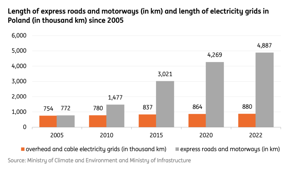 Underinvestment in critical infrastructure such as the national grids has posed a significant challenge to Poland’s long-term economic growth. While investment in express roads and motorways has increased sevenfold over the past two decades, investment in electricity grids has stagnated. The report states that Poland’s “imbalance in infrastructure investment, especially in electricity grids, needs immediate attention to support the overall economic development.