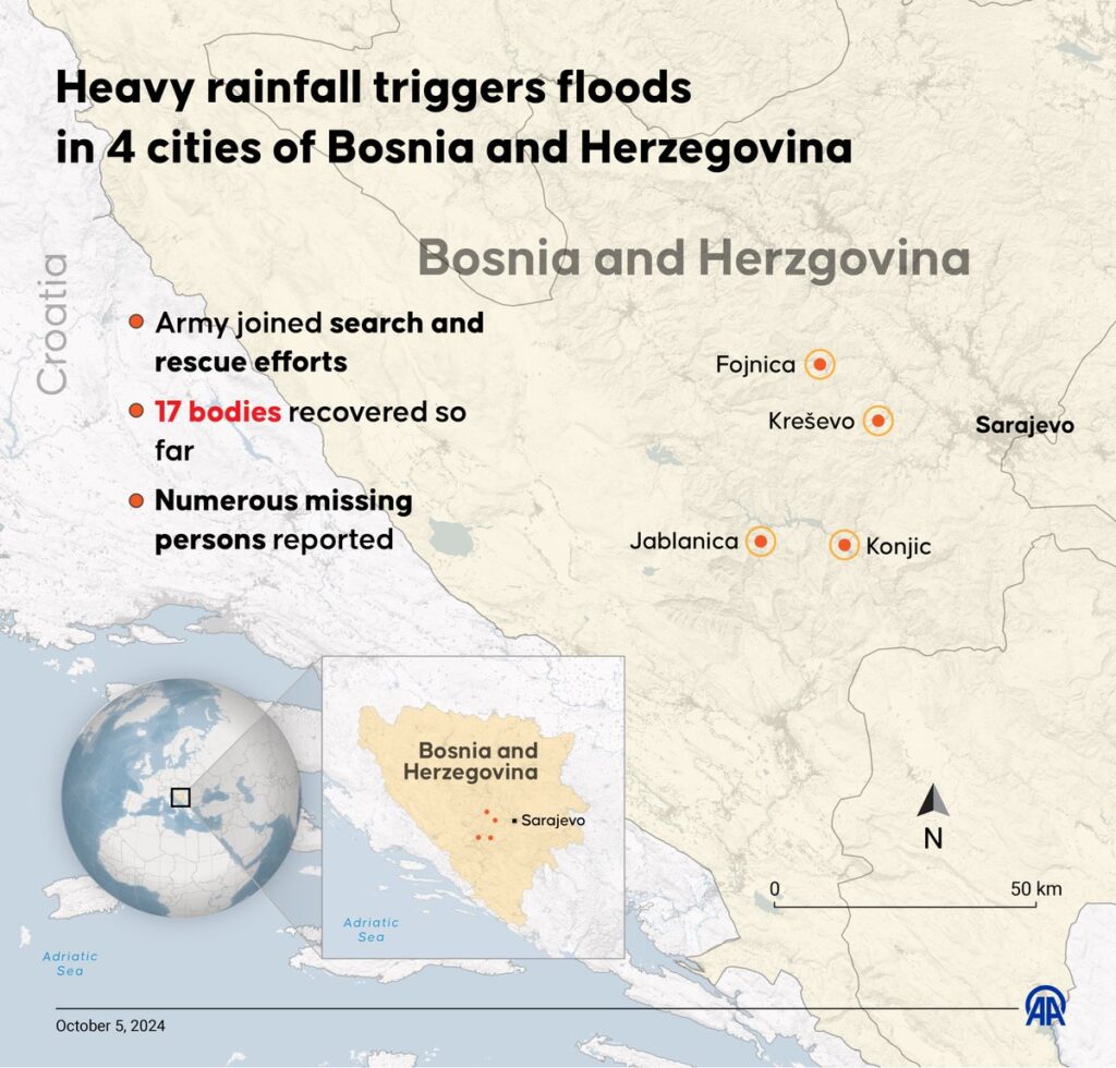 Torrential rain has caused rivers to overflow and entire villages to be buried under rubble in BiH, leaving at least 18 dead and many others injured. BiH authorities declared a state of natural disaster as major transport routes were cut off across the country, and are continuing the search for at least ten missing people, including several from the village of Donja Jablanica, south BiH, which was almost entirely engulfed by a rockslide.