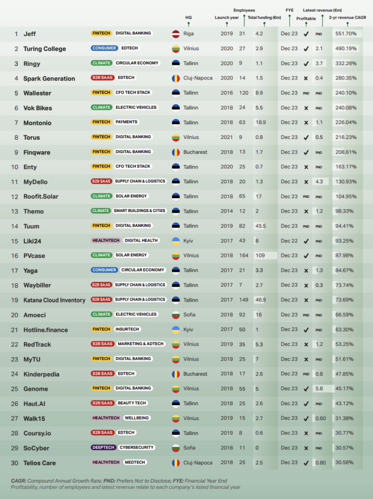 The Sifted 30: Eastern Europe & Baltics leaderboard ranks private startups established within the last decade based on percentage-revenue growth over the previous 3 years.