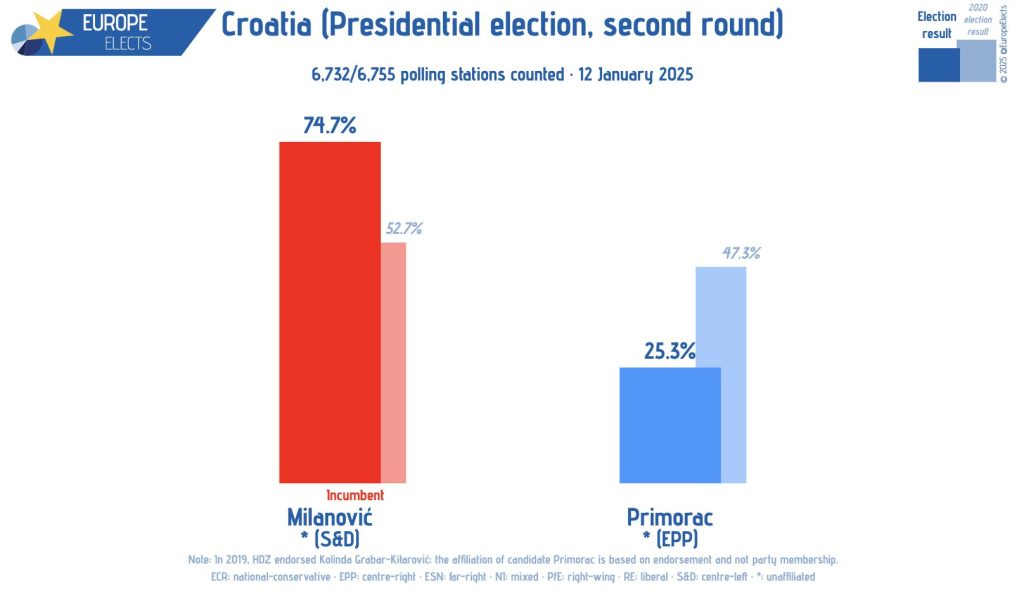 Reading Time: 3 minutesCroatian President Zoran Milanovic secured a decisive re-election victory, defeating his conservative challenger in a run-off election on Sunday, 12 January 2025.