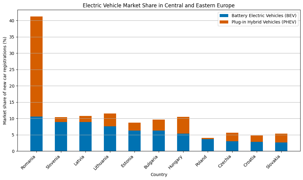 Moreover, according to the European Environment Agency (EEA), Norway and Sweden dominate EV adoption in Europe, but Romania leads CEE, with more than 10% of new car sales being fully electric. Other CEE countries, such as Slovenia, Latvia and Lithuania, also show growing adoption, though most remain well below the EU average.